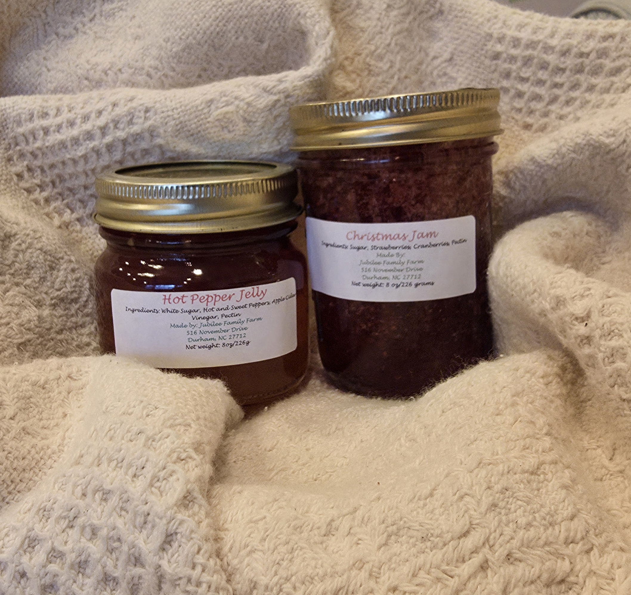 Blueberry, Muscadine, Blackberry, Hot Pepper, Christmas Jam, Black and Blue (blackberry-blueberry)